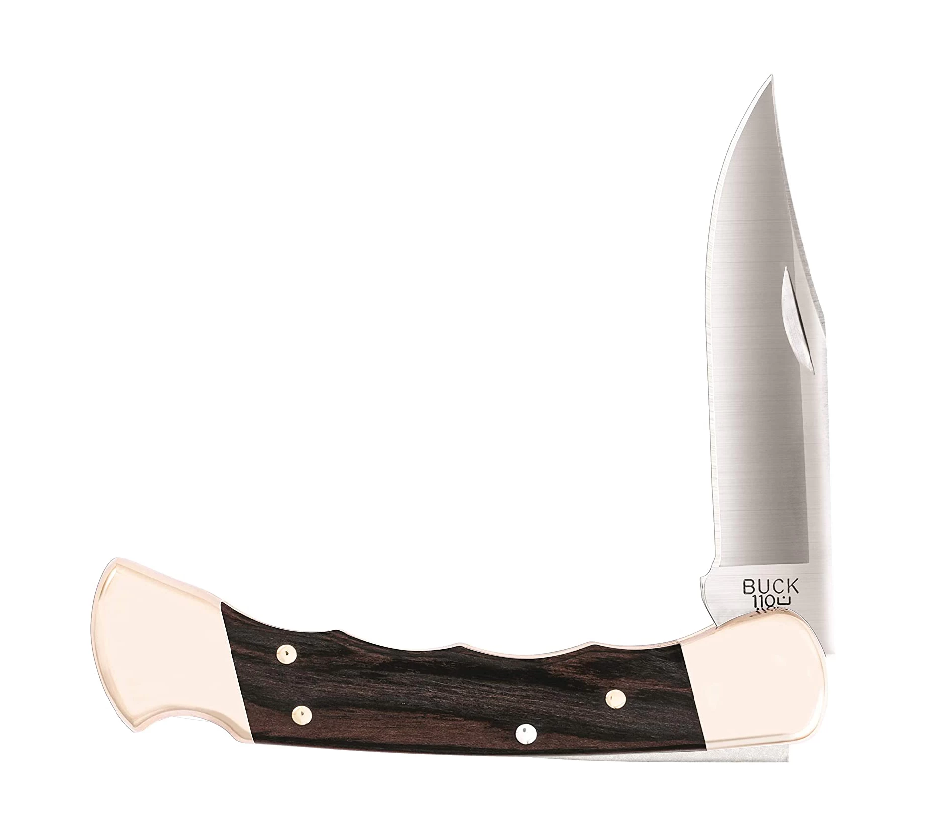 Buck Knives 110 Finger Groove Genuine Ebony Wood Folding Hunter W/Upgraded Suede Sheath