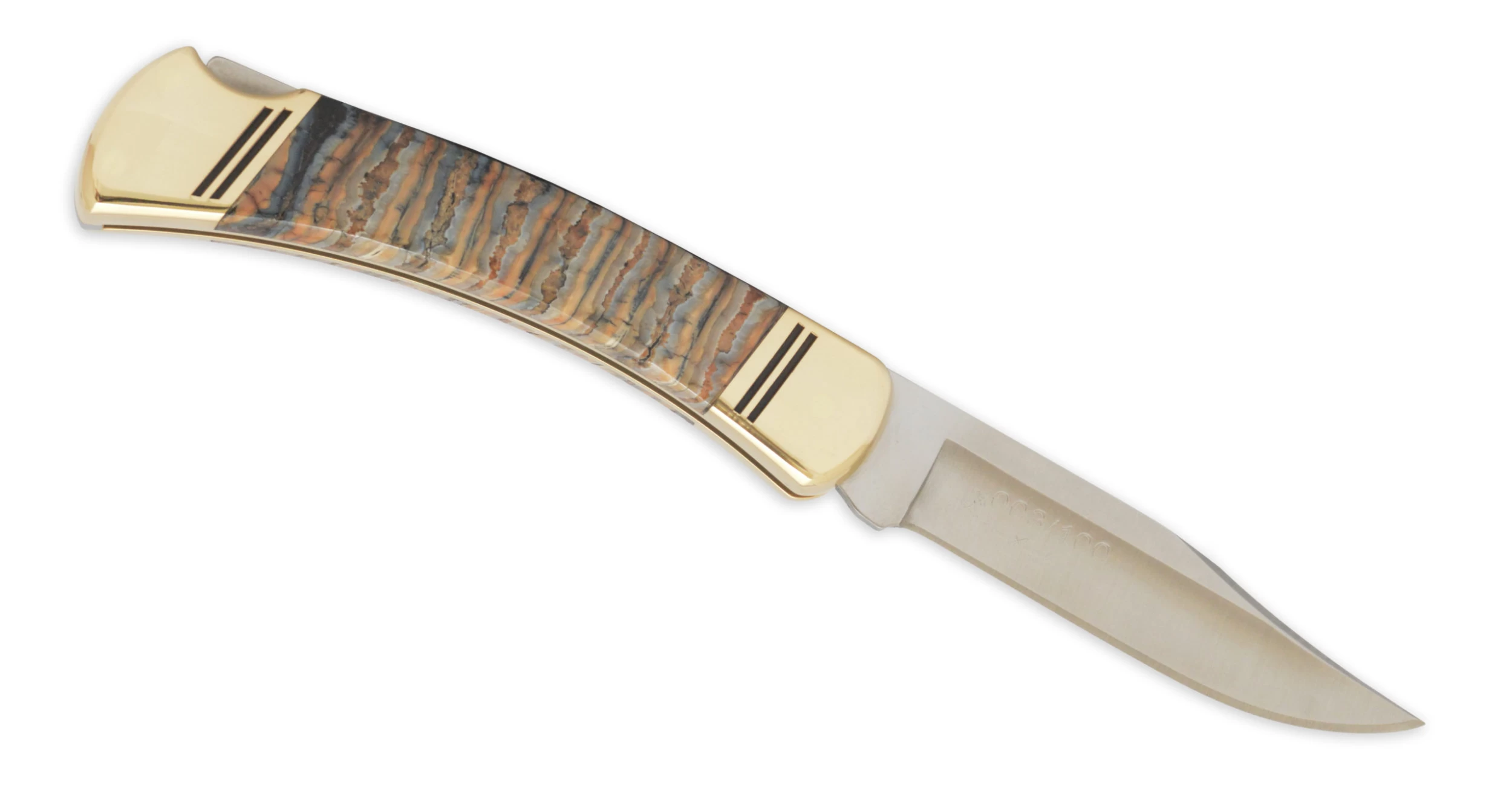 Buck Knives 110 Folding Hunter Custom Natural Mammoth Tooth By Brian Yellowhorse W/ Sheath – Limited Edition