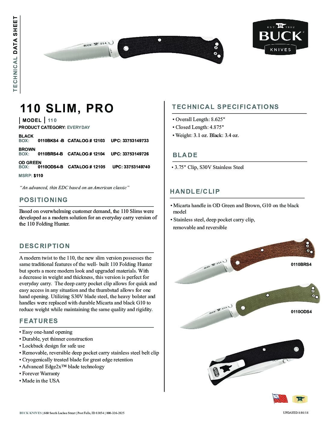 Buck Knives 110 Slim Pro Brown Micarta BOS S30V Folding Hunter Knife W/ Clip