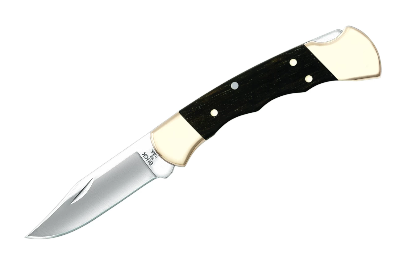 Buck Knives 112 Ranger Finger Groove Genuine Ebony Wood Folding Knife W/Sheath