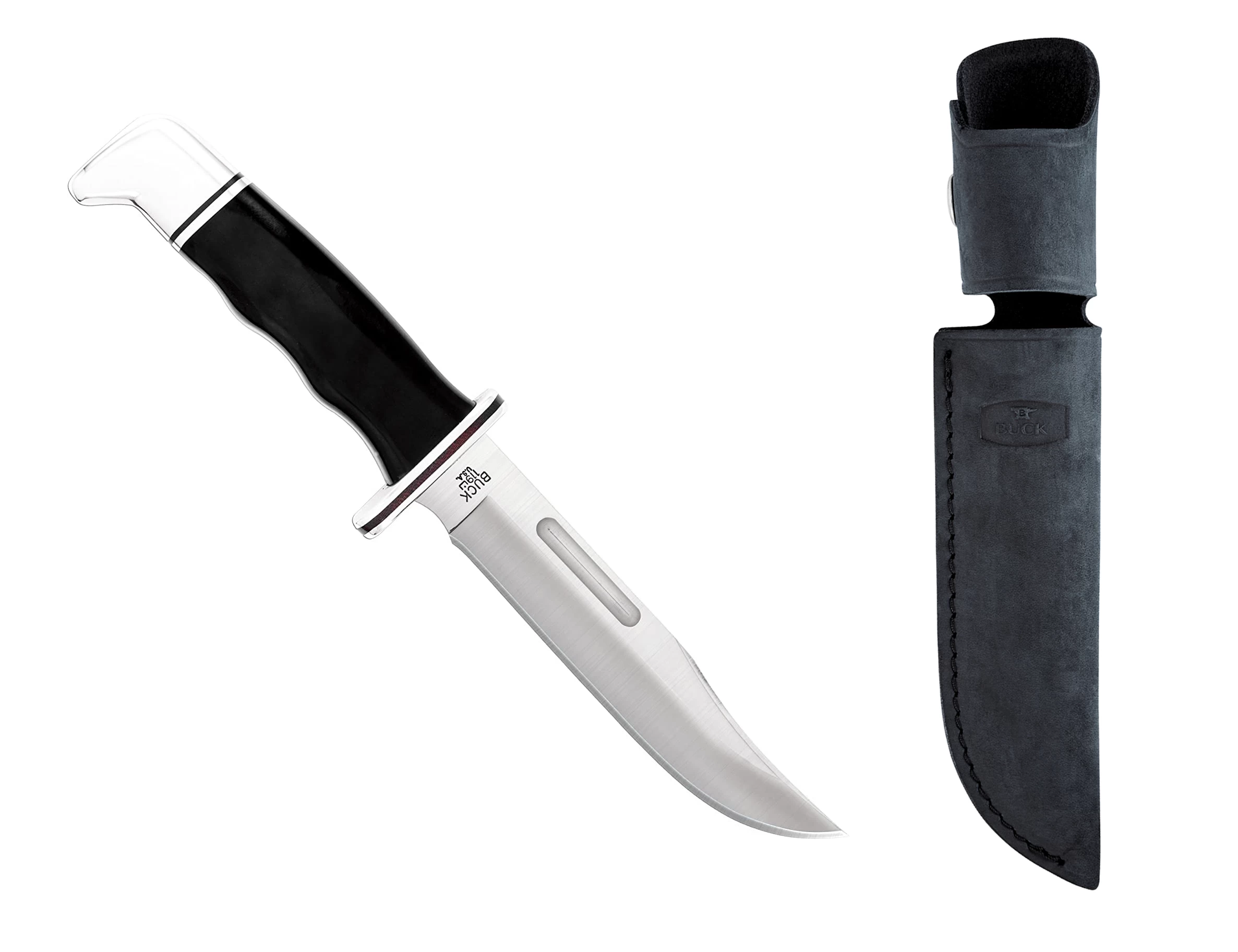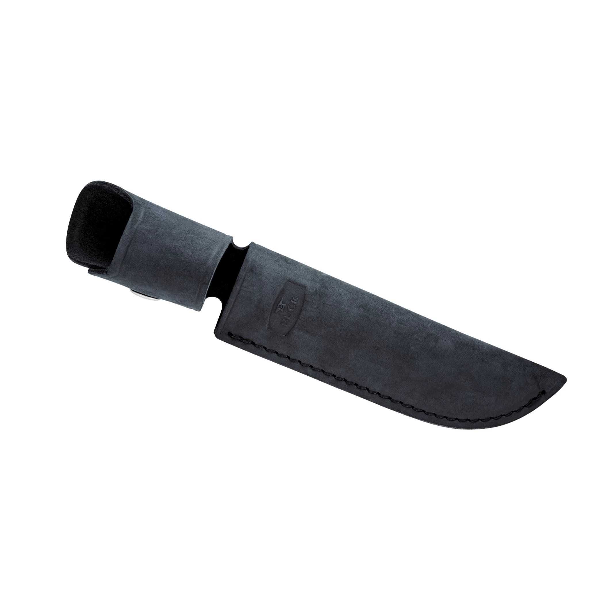 - Extras: Made In Post Falls, ID. Genuine Black Suede Leather Sheath. Buck Forever Warranty