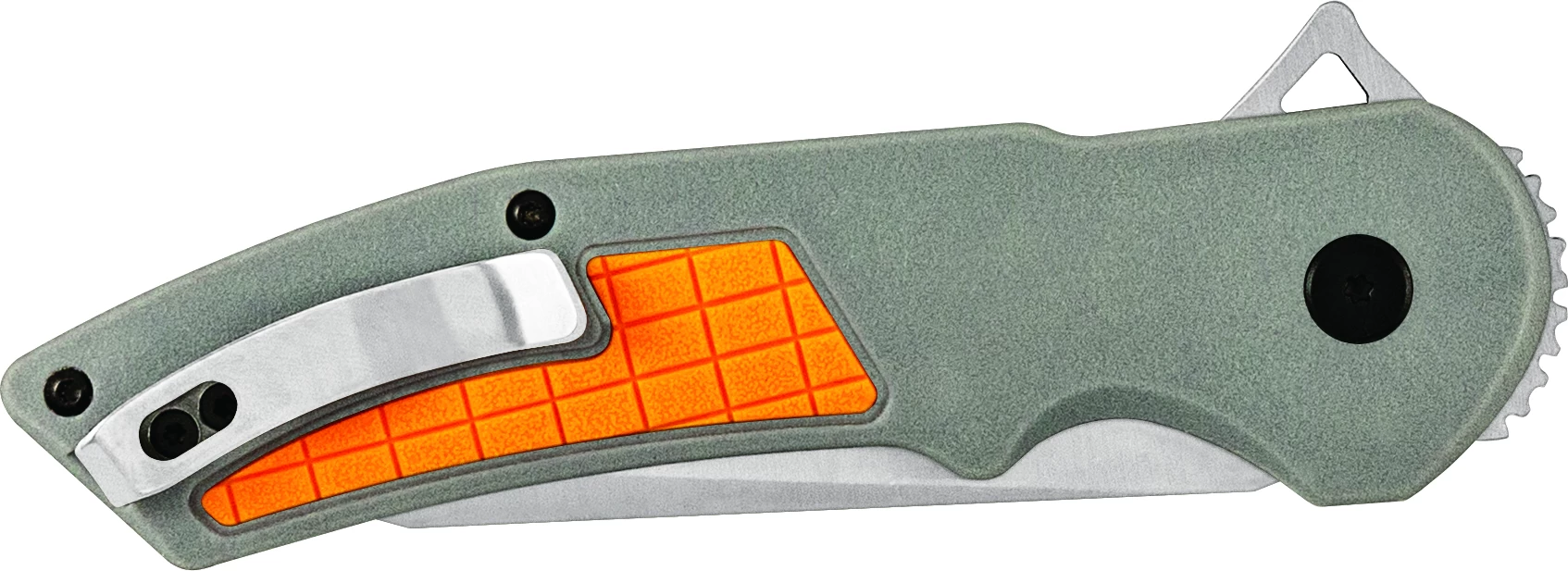- Handle Material: Orange/Gray Polypropylene W/ Pocket Clip
