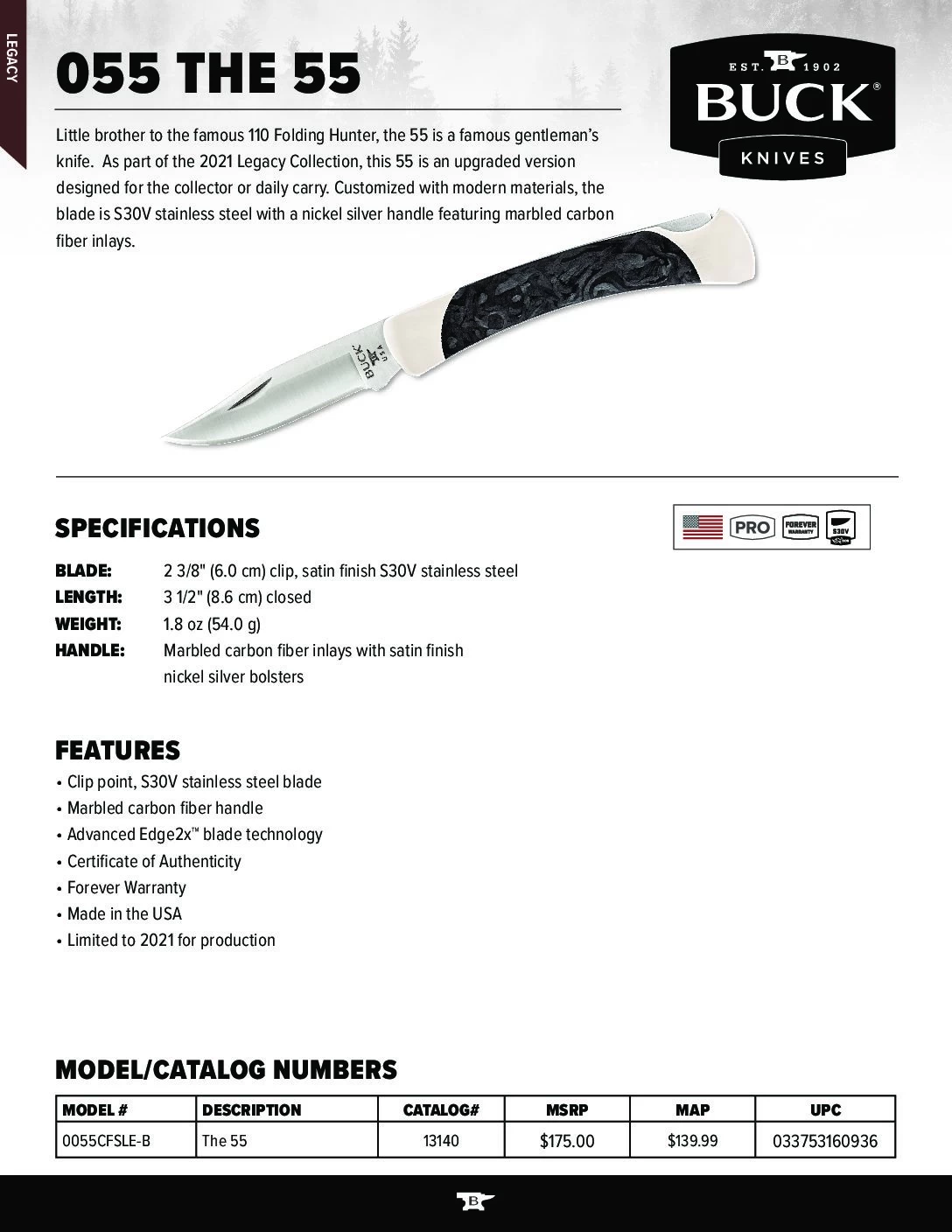 Buck Knives 055 Mini Folding Hunter Legacy Collection “The 55”, Marbled Carbon Fiber Handle, S30V Steel