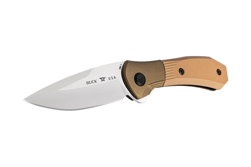 Buck Knives 590 Paradigm Assisted Open Knife 3″ S35VN Drop Point Blade, Brown G10 Handles with Rotating Bolster Lock W/ Clip