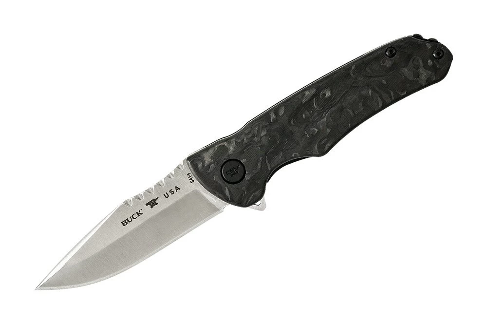 Buck Knives 841 Sprint Pro Ball Bearing Flipper Folding Knife, 3.125″ S45VN Blade, Marbled Carbon Fiber Handles W/ Clip