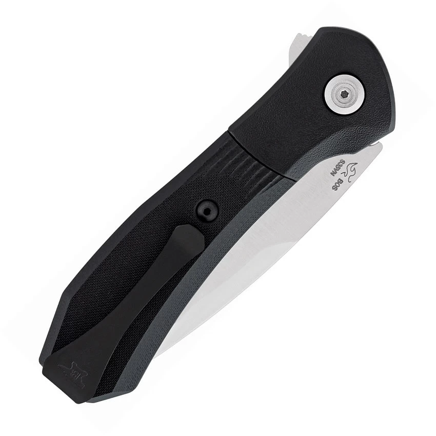 Assisted opening. 4.38″ (11.13cm) closed. 3″ (7.62cm) satin finish S35VN stainless drop point blade. Black textured G10 handle. Extended tang. Pocket clip. Cerakote coated rotating bolster. Boxed.